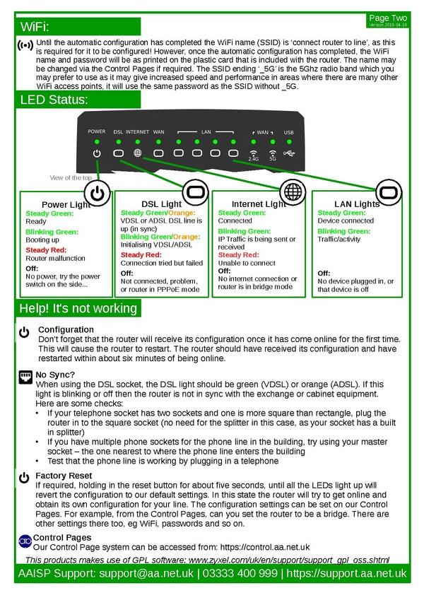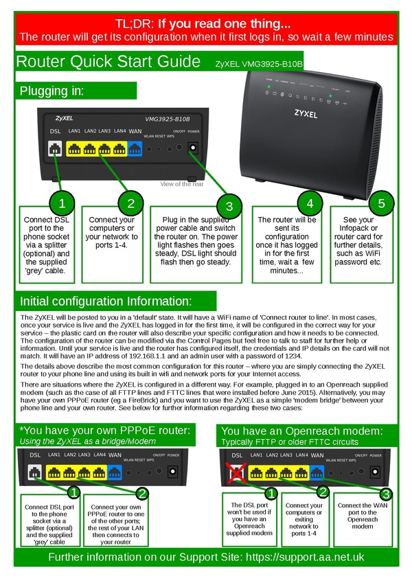 Our quick start guide replaces the original ZyZEL one that is included in the box. It has more specific information about the router relating to our service.