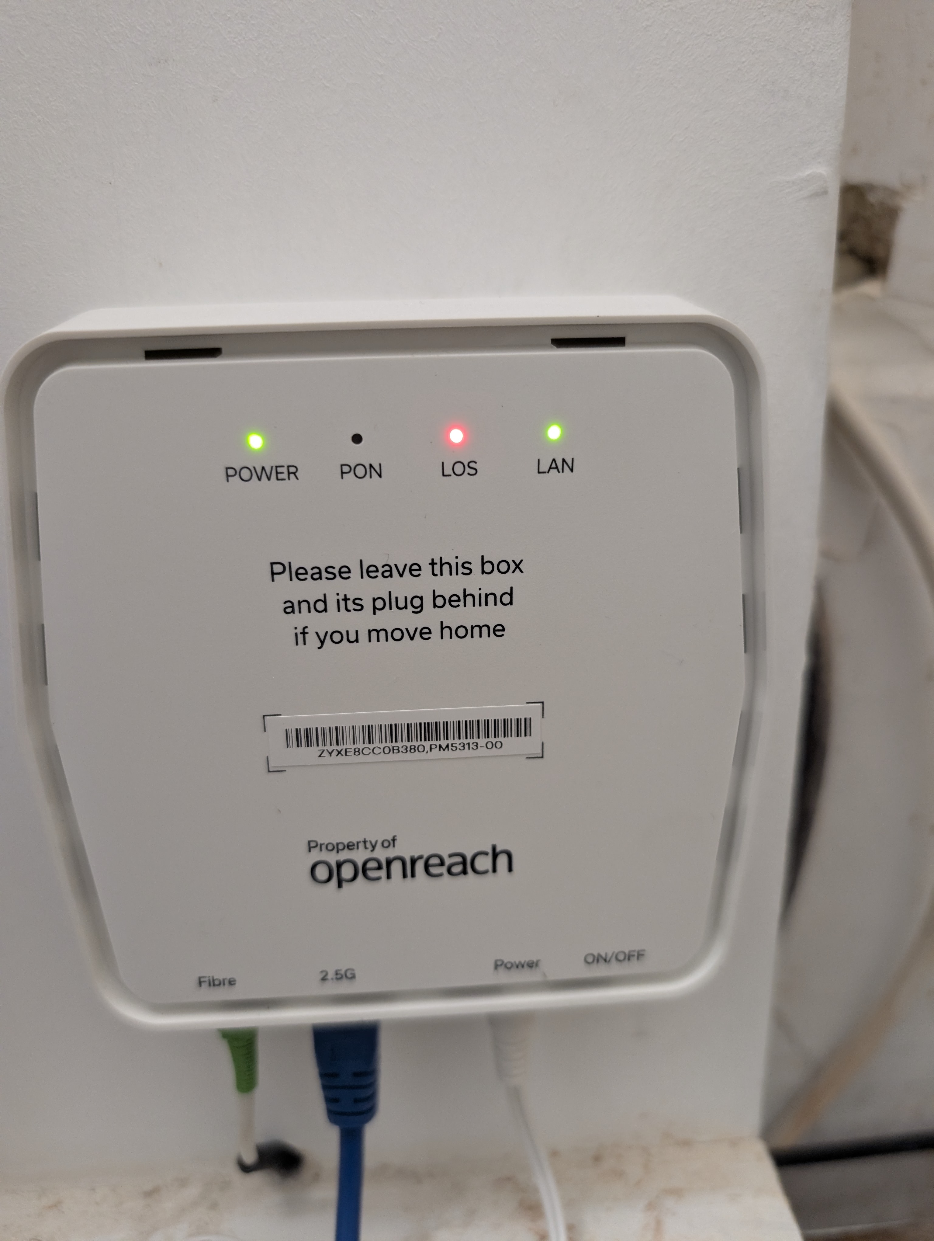 | 18:07, 3 January 2026 | Openreach ZyXEL ONT.jpg (file) | 1.68 MB | Farnz (talk | contribs) | Openreach 2.5 GbE ONT (ZyXEL made), showing "Loss of Service" fault | 1 | |